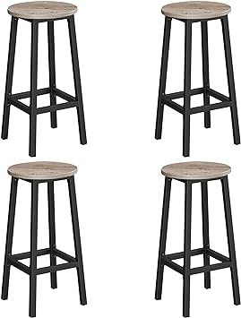 Barkrukken, set van 4, barstoelen, keukenstoelen met metalen frame, eenvoudige montage, met voetensteun, voor keuken, woonkamer, eetkamer, greige-klassiek zwart