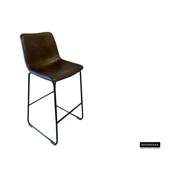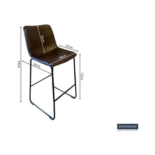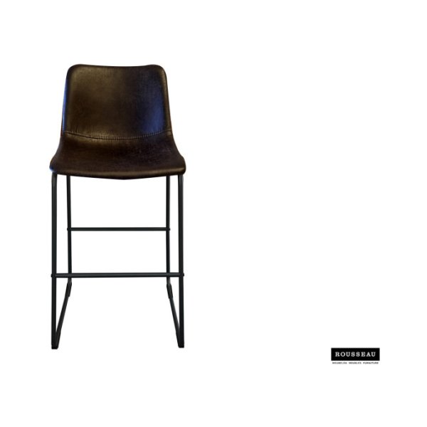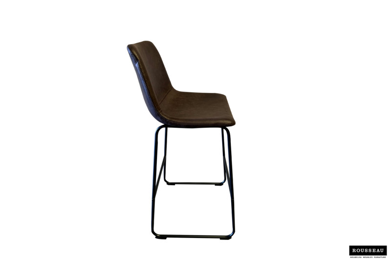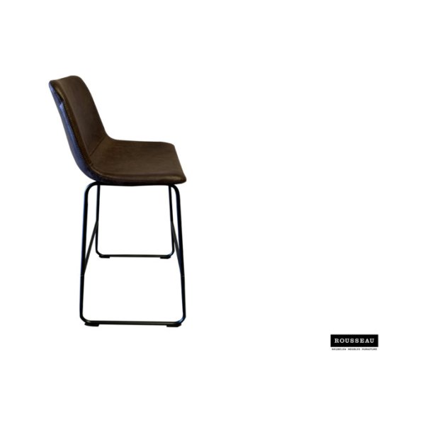 Barstoel ‘Mancia’ PU Donkerbruin , Poten metaal en bekleding PU vintage