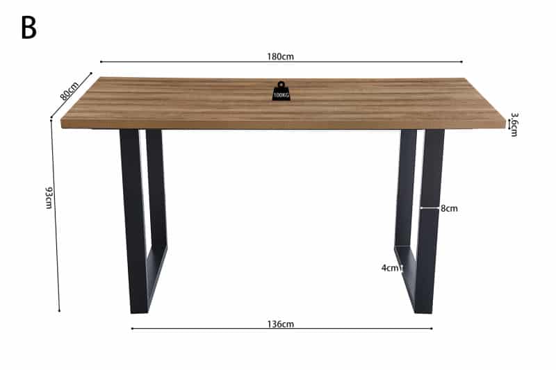 | Bullet Point 1 | – – Gemaakt met materialen zoals Poten metaal 8×4 cm, blad MDF, decor, ABS boord – Biedt duurzaamheid en comfort voor gebruikers – Afmetingen van H 93 x B 160 x D 80 cm en een gewicht van 44.0 kg – Geschikt voor moderne levensstijl en een perfecte aanvulling in elk interieur |