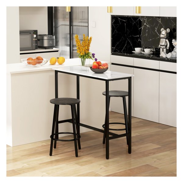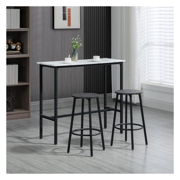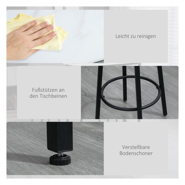 - Zowel de tafel als de stoelen zijn uitgerust met een trendy voetsteun voor extra comfort tijdens het zitten.