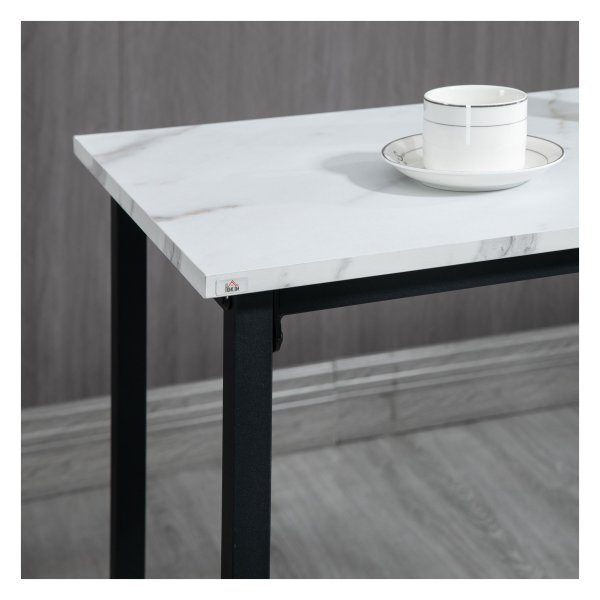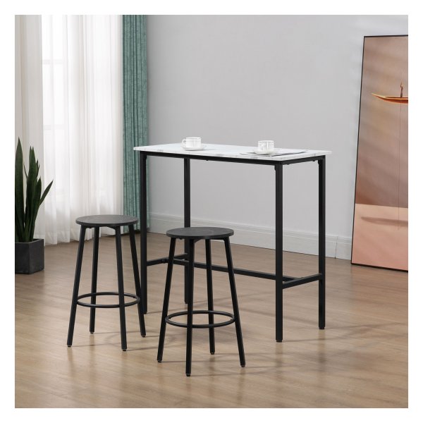 - Het stalen frame van de eetset is voorzien van een duurzame poedercoating, waardoor het lang meegaat en een luxe uitstraling heeft.