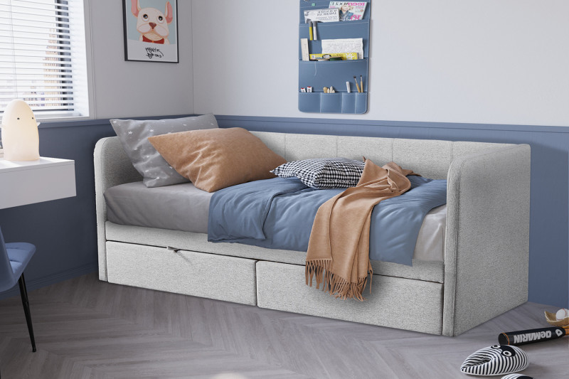 Bed ‘Parma’ 90×200 met lattenbodem Beige, Structuur , spaanderplaat en bekleding stof