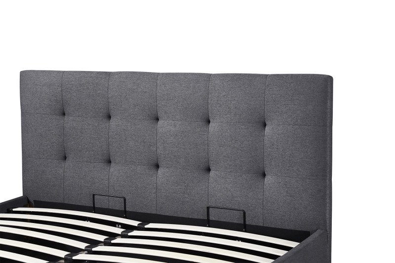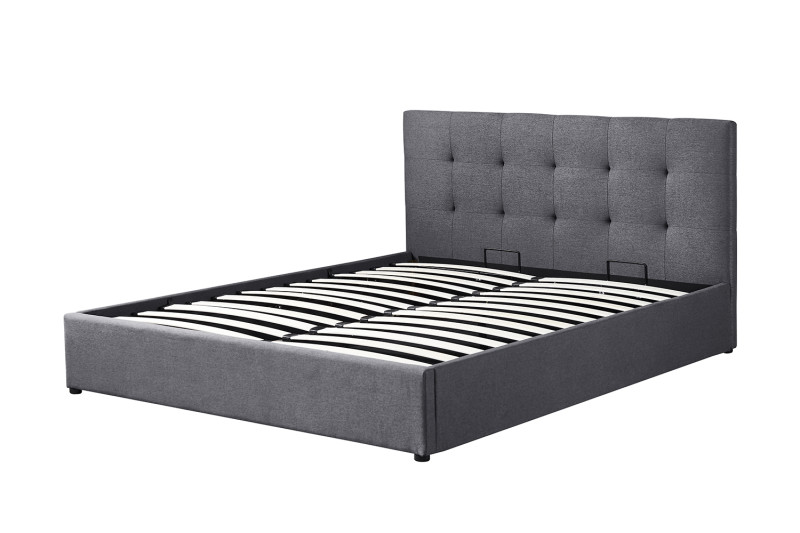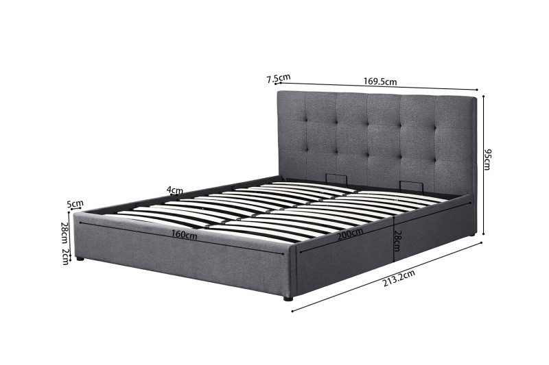 Bed ‘Porto’ 160×200 met lattenbodem Grijs, Structuur , spaanderplaat en bekleding stof, H-H 95 x B-L 170 x D-P 218cm