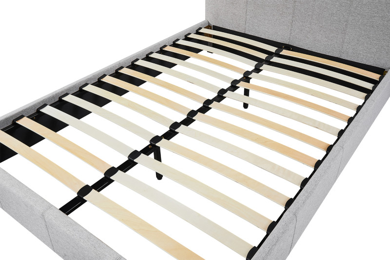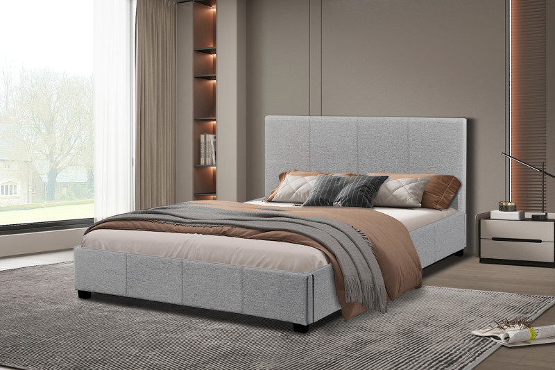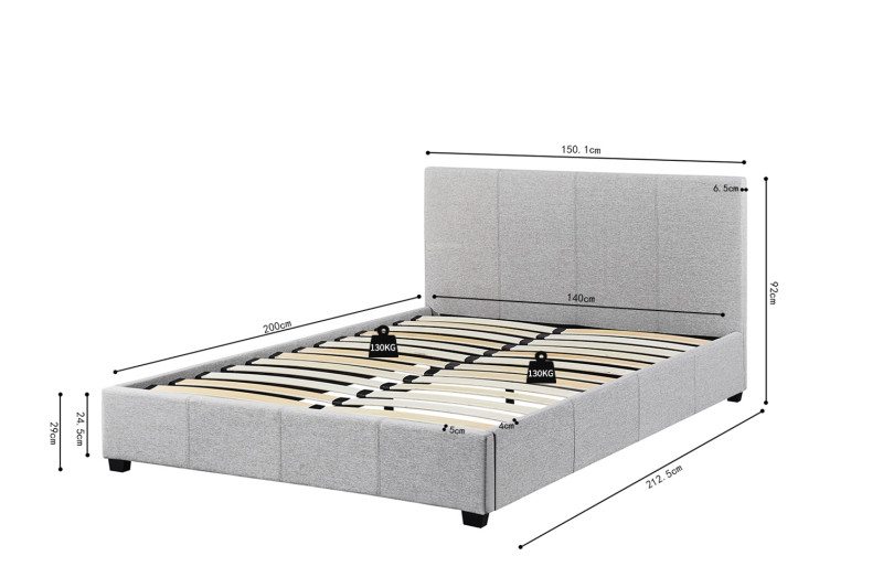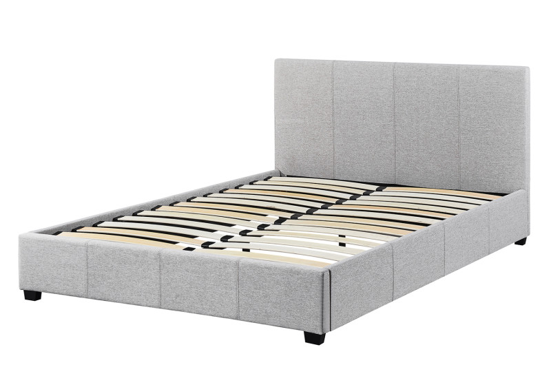 Bed ‘Roma’ 140×200 met lattenbodem Beige, Structuur , spaanderplaat en bekleding stof