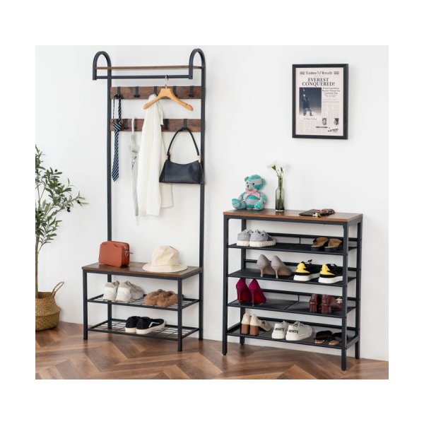 Bullet Point 2 | Perfecte opslag: topverdeler biedt fotolijsten en accessoires, 9 beweegbare haken zodat u kunt gebruiken zoals u wilt.Bench met 2 mesh planken, passen tot 6-8 paar schoenen |