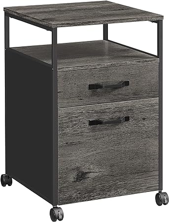 Mobiele Bestandskast met Wielen in Houtskoolgrijs en Zwart – 2 Laden en Open Plank – Geschikt voor A4 en Letter Formaat – Hangende Bestandsmappen – Afmetingen 44 x 42 x 66.5 cm