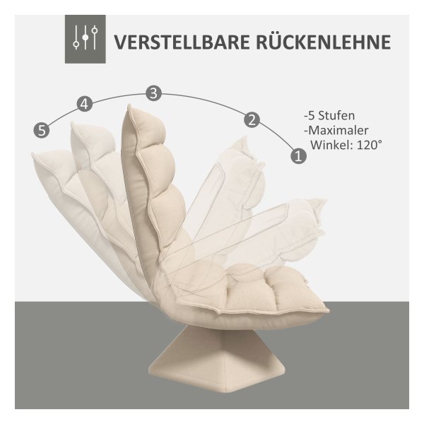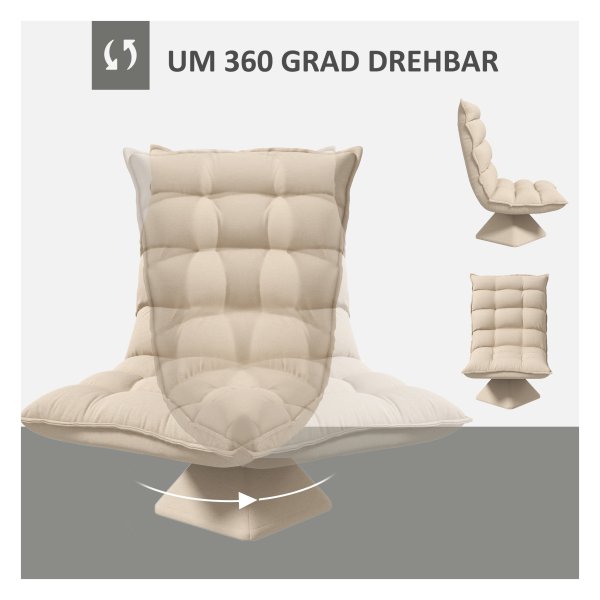 Bullet Point 1 | Trendy ontwerp: Een trendy vloerstoel die uw interieur een vleugje elegantie en verfijning geeft Hoog comfort: Dikke en zachte vulling met velourslook bekleding voor een uitstekende zitervaring bij alle temperaturen 360° verstelbare rugleuning: Verstelbare rugleuning tot max. |