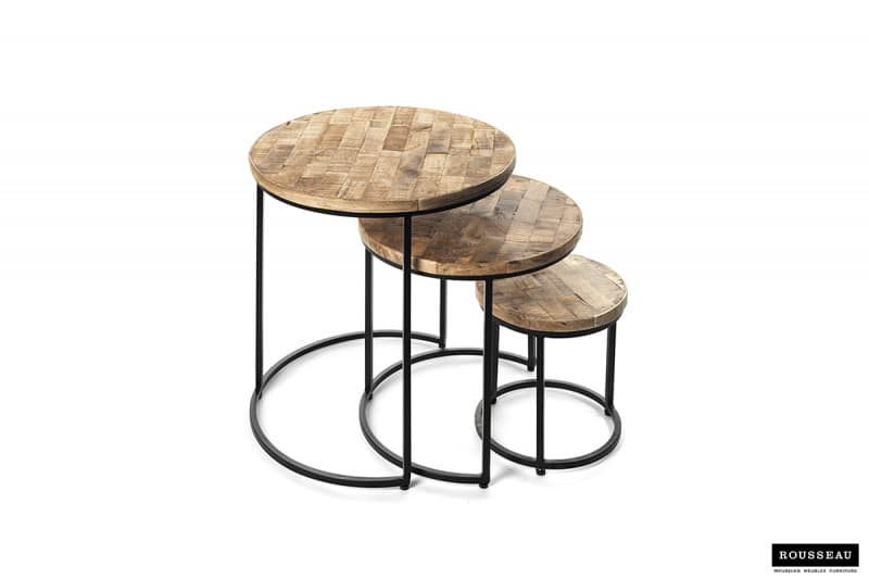 Bijzettafel ‘Leo’ 3-delig, Structuur metaal, blad exotisch hout mangolia