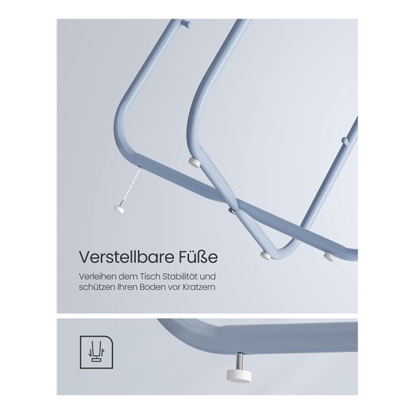 Robuust en stabiel: de robuuste spaanplaat kan stevig en wiebelvrij op het frame worden bevestigd. De uit één stuk vervaardigde stalen U-poten zorgen voor een sterke grip. De verstelbare poten verhogen de stabiliteit en beschermen je vloer tegen krassen