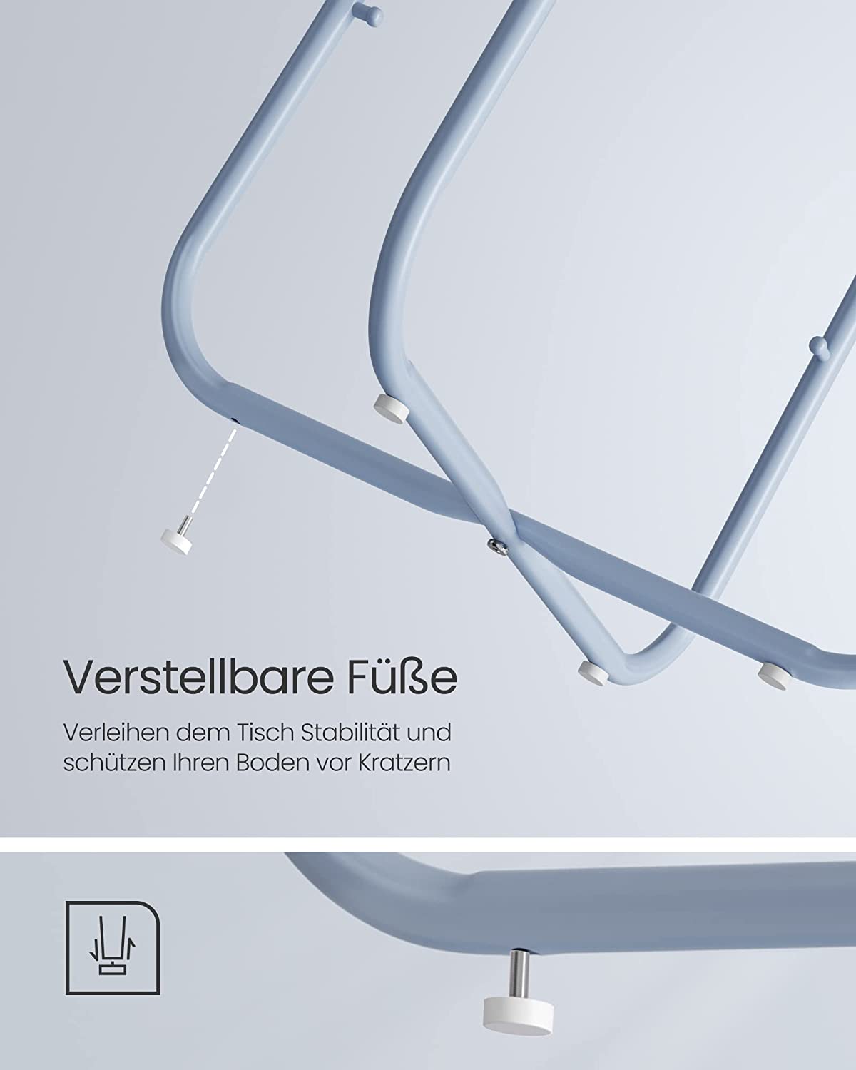 Modern en eenvoudig: deze eenvoudige ronde bijzettafel voegt een vleugje stijl toe aan je woonkamer of slaapkamer dankzij de combinatie van poederblauw en pastelblauw en past bij verschillende interieurstijlen
