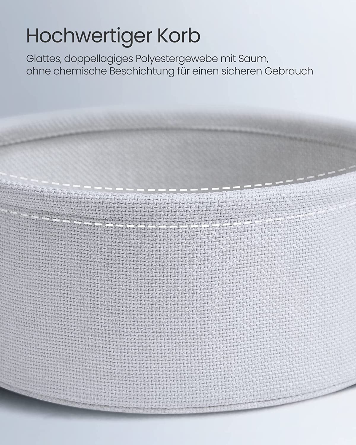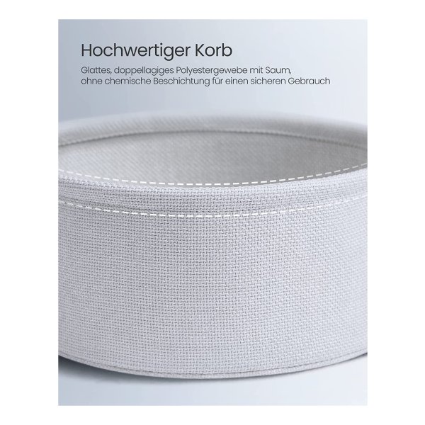 Hoogwaardige mand: de mand bestaat uit glad, dubbellaags polyesterweefsel en ziet er mooi uit. Bovendien heeft hij geen chemische coating en garandeert hij een veilig gebruik. Dankzij de linnenlook geeft hij deze kleine tafel een unieke touch