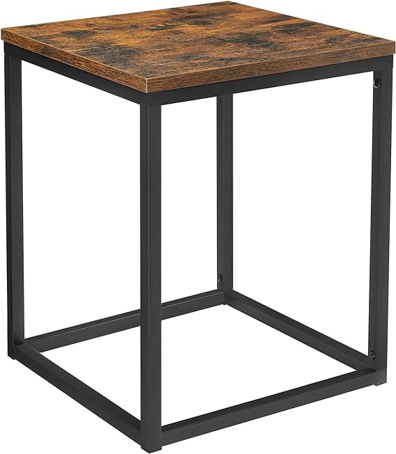 Bijzettafel voor bank, vierkante nachtkastje, stalen frame voor woonkamer, kantoor, slaapkamer, industriële stijl, rustiek bruin en zwart