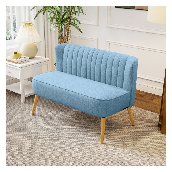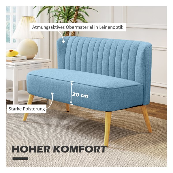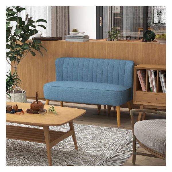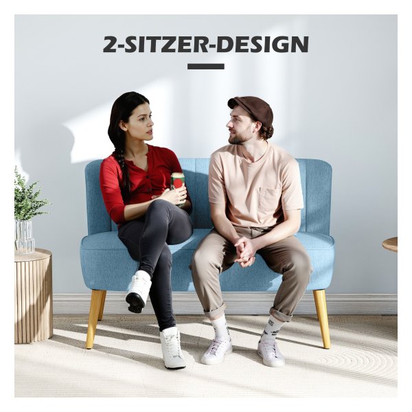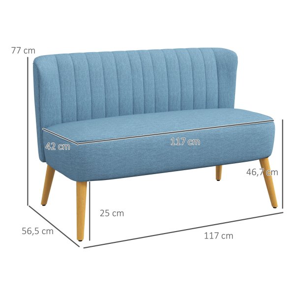 Creëer een knusse en stijlvolle zithoek in jouw huis met deze prachtige loveseat in een trendy blauwe kleur. Perfect voor jou en je partner om samen te ontspannen na een lange dag of om een gezellige avond met vrienden door te brengen. De linnen look stof geeft de loveseat een luxe uitstraling, terwijl de houten poten zorgen voor een stevige en stabiele basis.