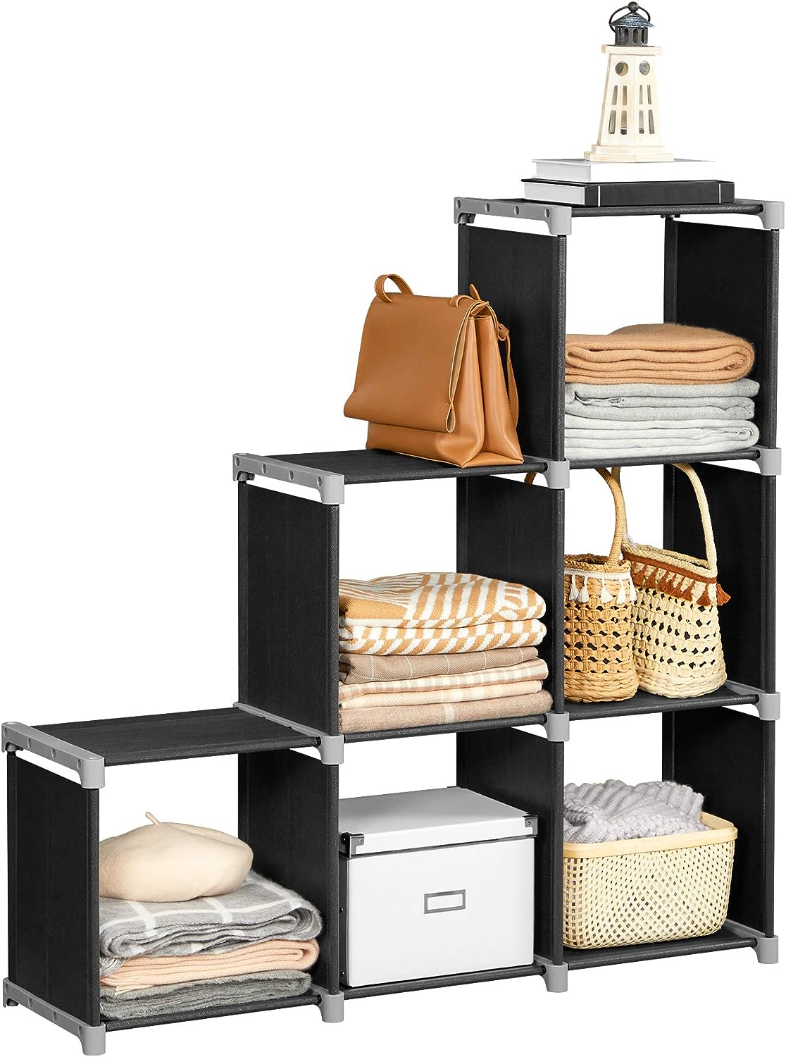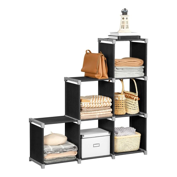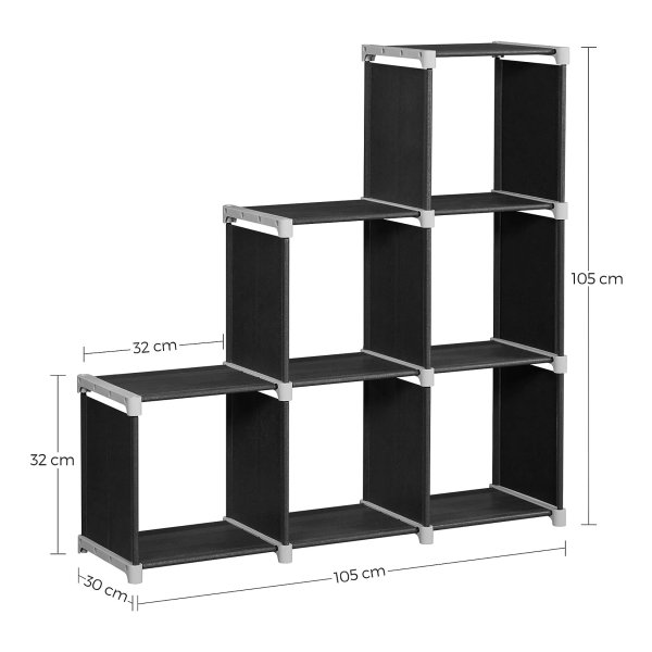 Deze multifunctionele boekenkast is een perfecte oplossing voor al uw opbergbehoeften. Het is een 6 kubussenrek, doe-het-zelf, traprek, organizer voor de woonkamer, opbergrek voor slaapkamer, kinderkamer, badkamer, voor speelgoed, ruimteverdeler. Het is gemaakt van stevig materiaal en heeft een zwarte kleur.
