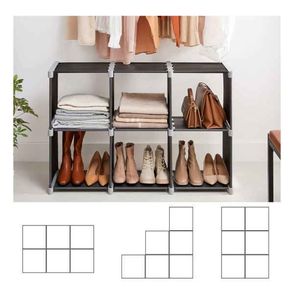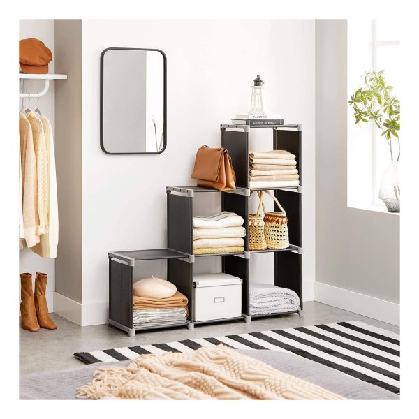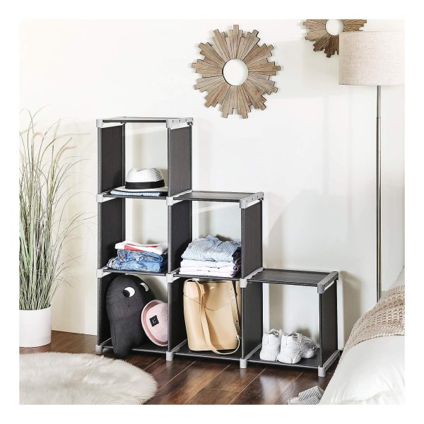 Het heeft 6 kubussen waarmee u uw spullen kunt organiseren en opbergen. U kunt de kubussen gebruiken om boeken, speelgoed, kleding, accessoires, documenten en andere items op te bergen. De kubussen zijn gemakkelijk te verplaatsen en te verstellen om aan uw behoeften te voldoen.