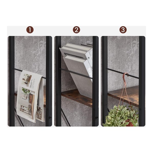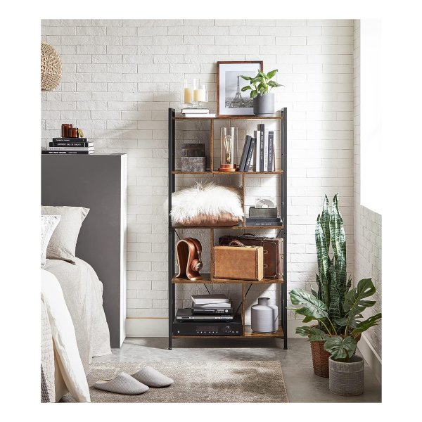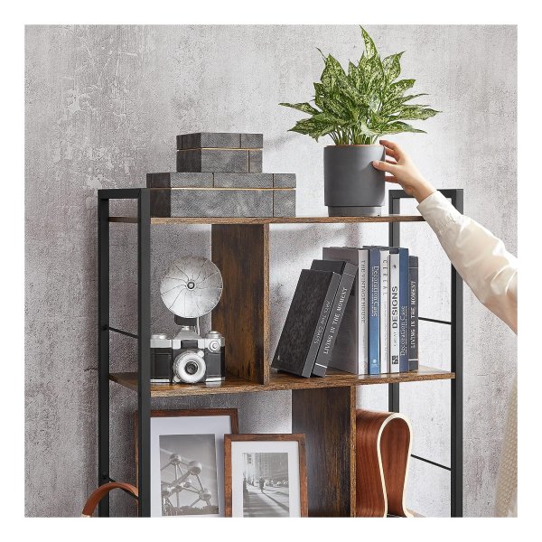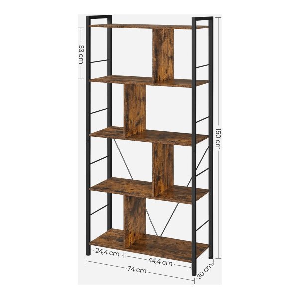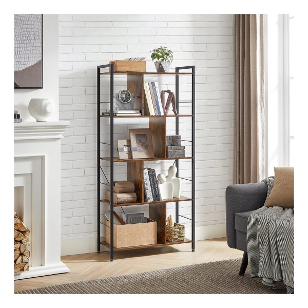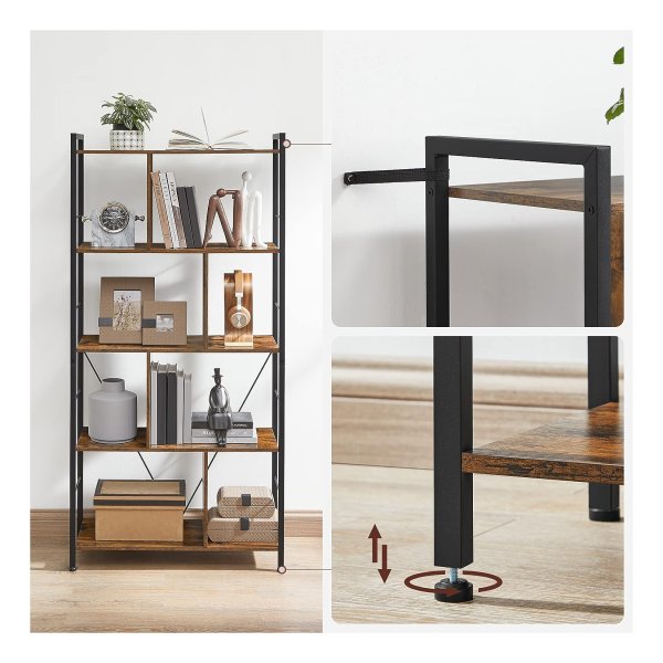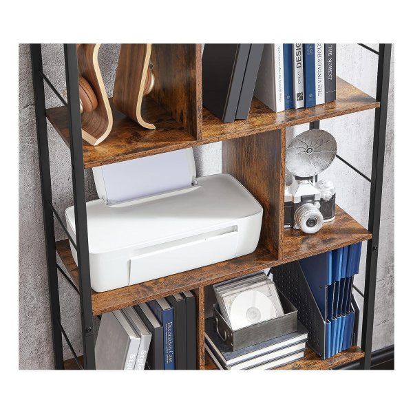 Boekenkast Boekenkast 5 verdiepingen woonkamer plank industriële opbergplank met open vakken voor thuiskantoor, slaapkamer, industriële stijl, rustiek bruin en zwart