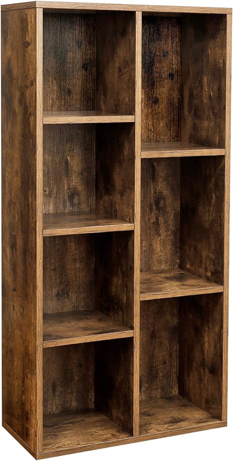 Boekenkast, kubusplank, opslagunit voor kinderen met 7 open compartimenten, voor woonkamer, kantoor, slaapkamer, scheidingswanden, 50 x 24 x 106 cm, Rustiue Brown