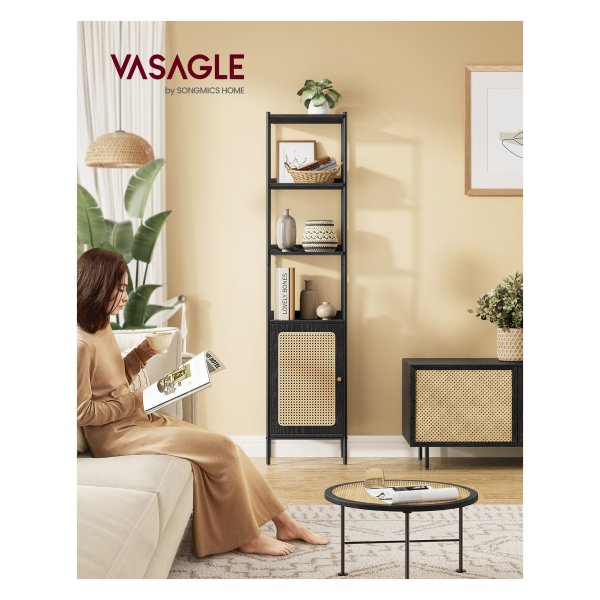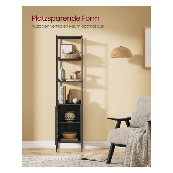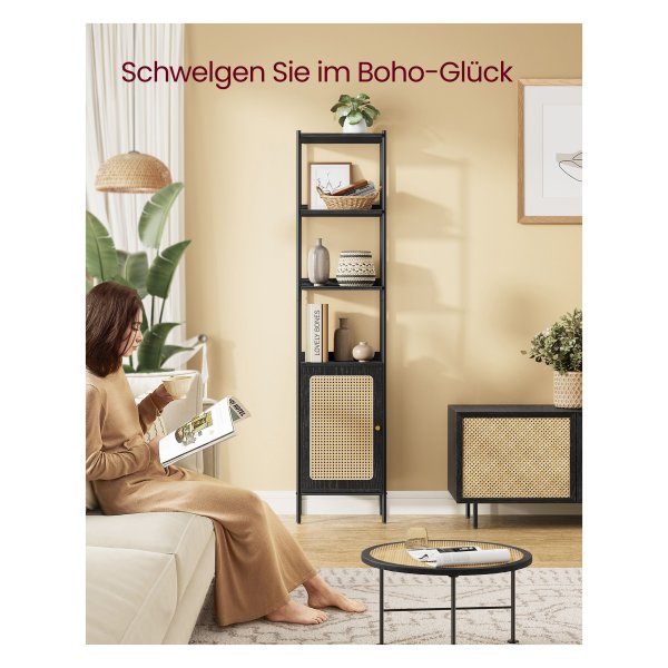 Boekenkast – Rotan-look deur – Verstelbare planken – Zwart