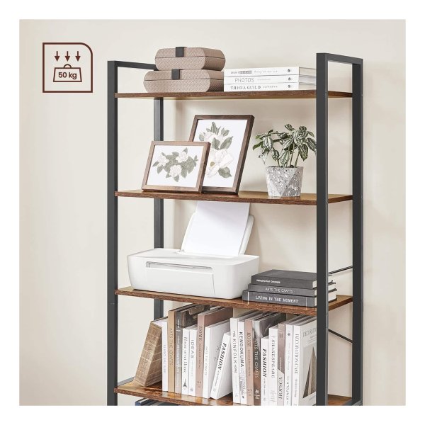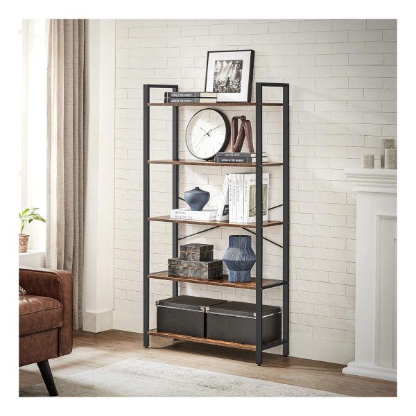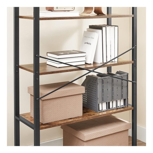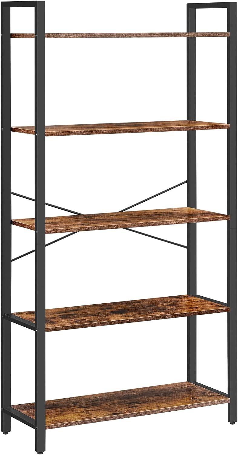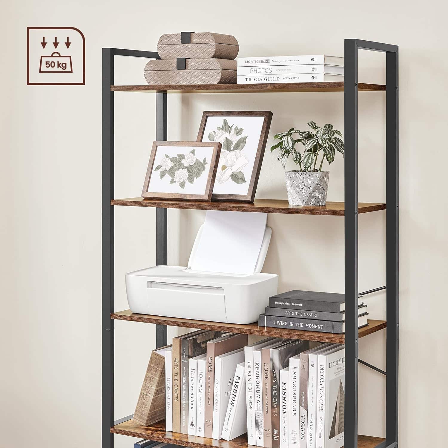 Boekenkast met 5 verdiepingen, rustieke planken met stalen frame, voor woonkamer, kantoor, studeerkamer, hal, industriële stijl, rustiek bruin en zwart