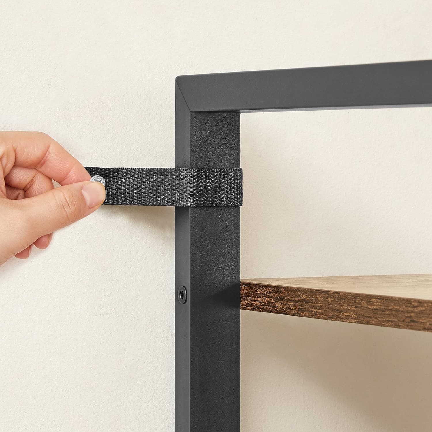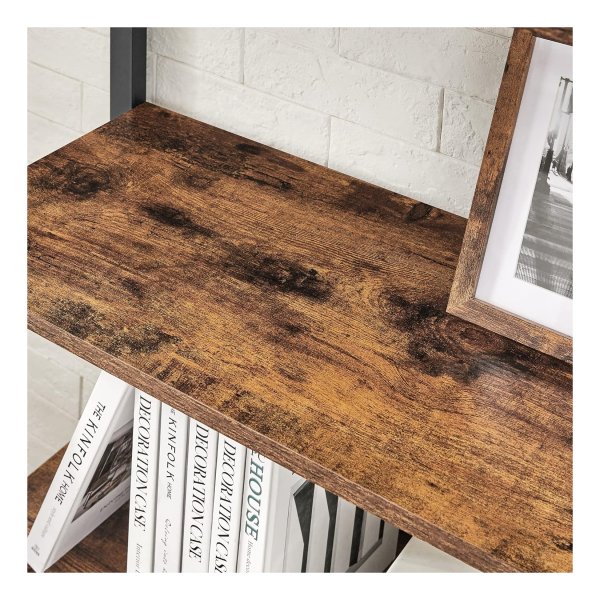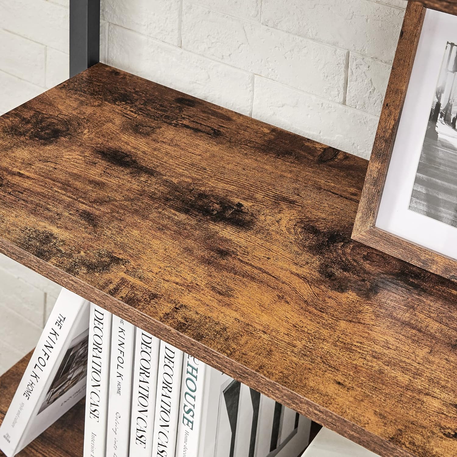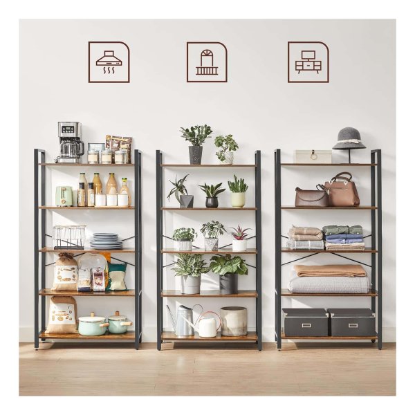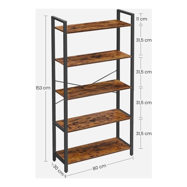 Boekenkast met 5 verdiepingen, rustieke planken met stalen frame, voor woonkamer, kantoor, studeerkamer, hal, industriële stijl, rustiek bruin en zwart