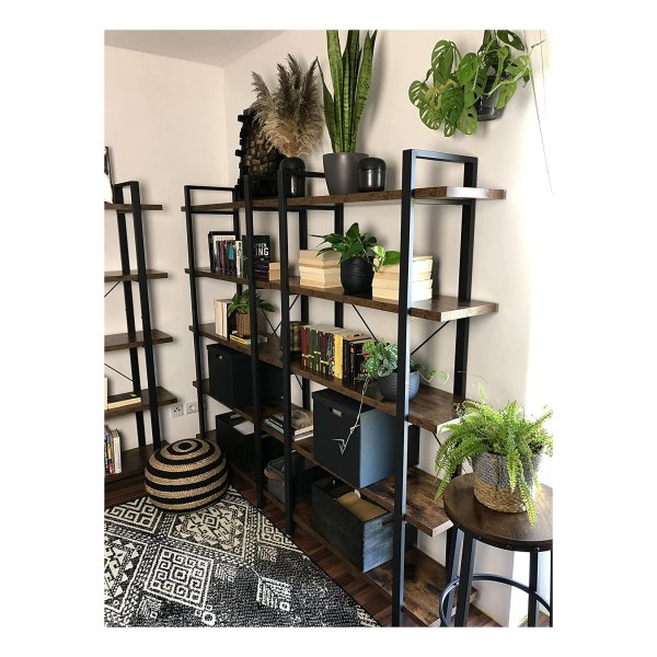 Boekenkast – Staand Rek met 5 Niveaus – Industrieel Design – Vintage Bruin/Zwart