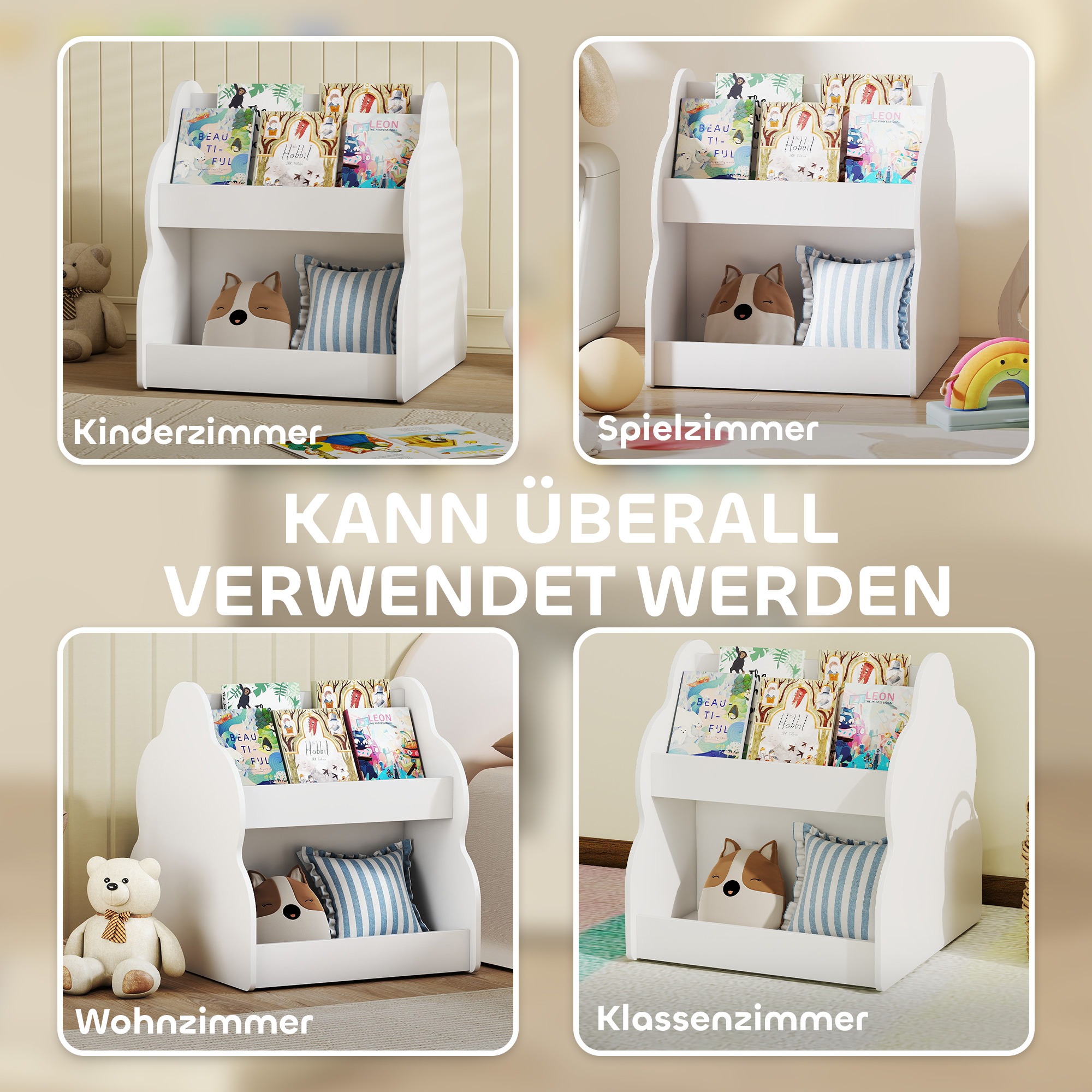 - Moeiteloze organisatie: Dit boekenrek zorgt voor orde in de kinderkamer met zijn twee zijden met elk twee planken, waardoor uw kind op een speelse manier kan leren om georganiseerd te zijn.