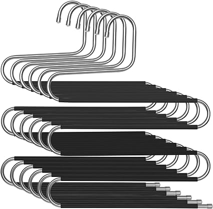 Broekhangers, set van 6 ruimtebesparende 5-laags metalen broekhangers, s-type niet-slip hangers voor jeans, sjaals, handdoeken, stropdassen, zilveren en zwarte