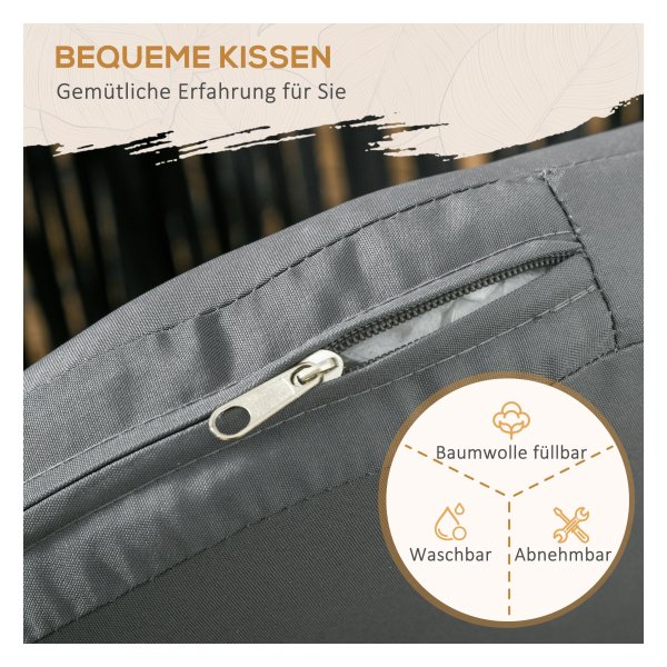Bullet Point 1 | Het handgeweven ontwerp en de zachte, stoffen bekleding van de zit- en rugkussens bieden een ongevenaarde ervaring van zitcomfort en lichaamsondersteuning, waardoor deze buitestoelen van Outsunny u een ontspannende en luxueuze middag in de tuin bezorgen. |