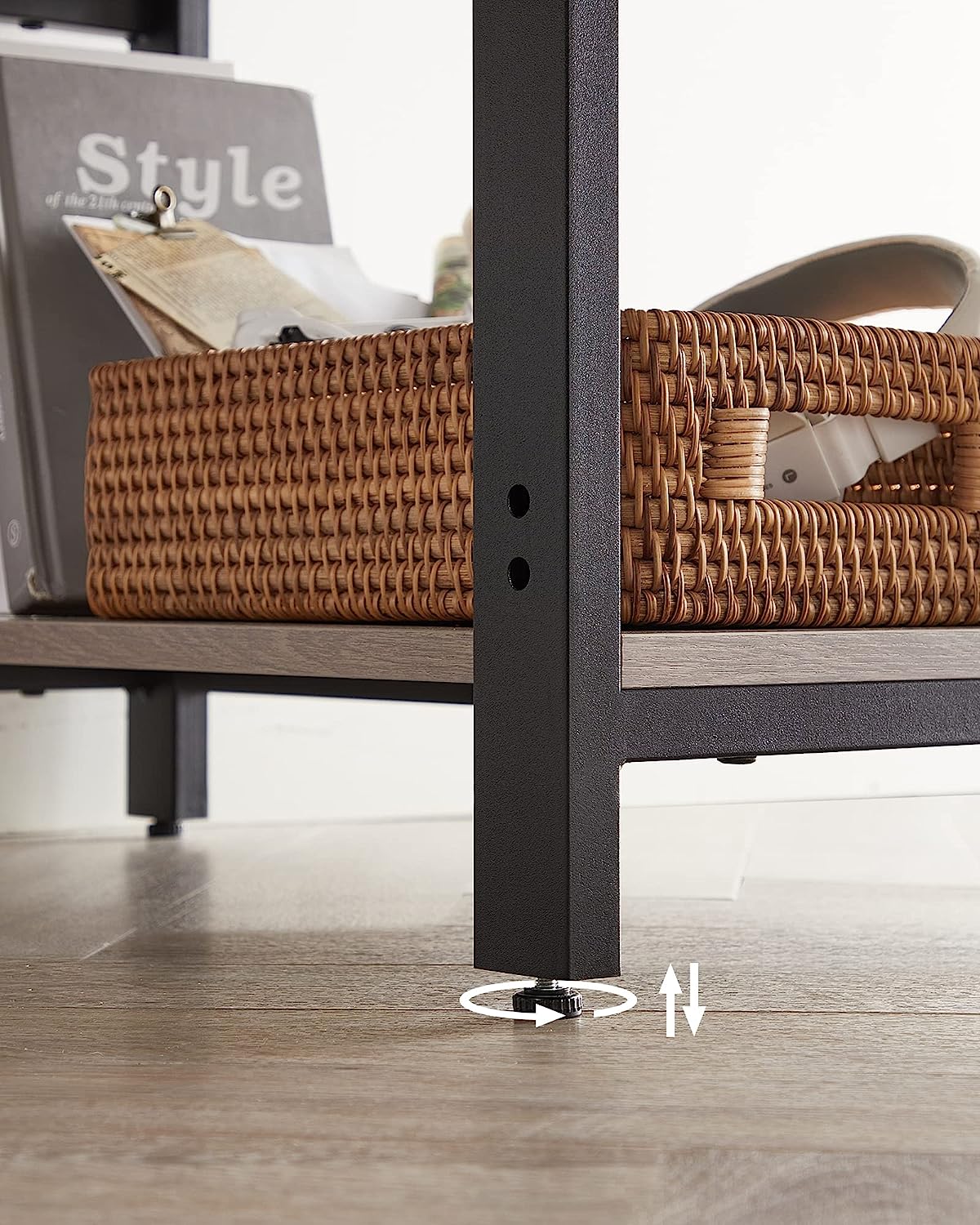 Industrieel Design Bureau Met 2 Planken – Greige-Zwart – Stalen Frame – Perfect Voor Kantoor Of Woonkamer