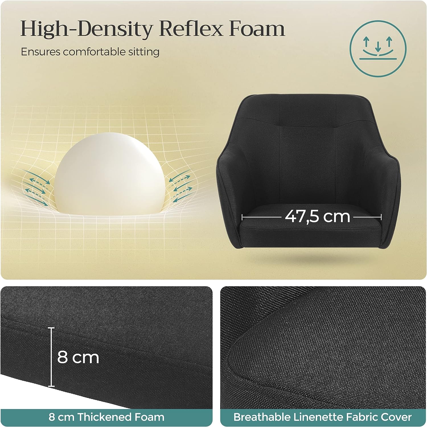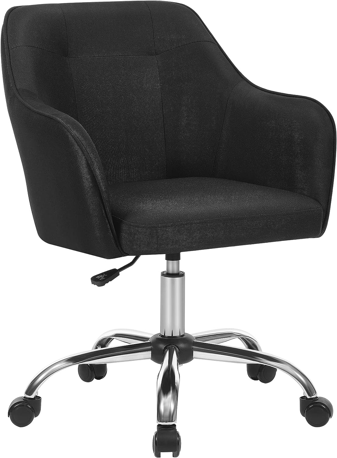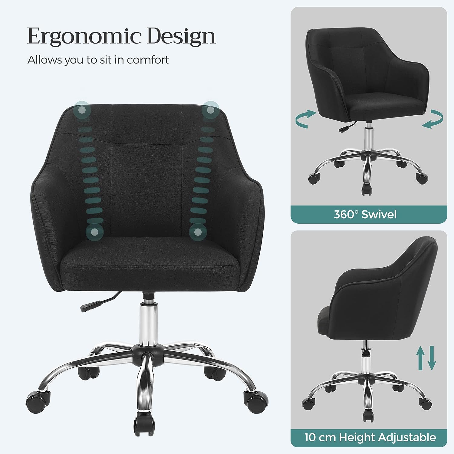 Bureaustoel, Comfortabele Bureaustoel, İn Hoogte Verstelbare Computerstoel, Belastbaar Tot 120 Kg, Stalen Frame, İmitatielinnen, Ademend, Thuiskantoor, Kantoor, Zwart
