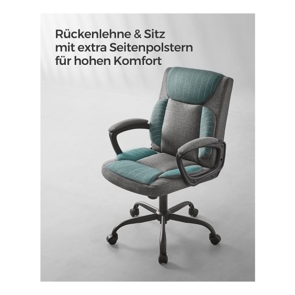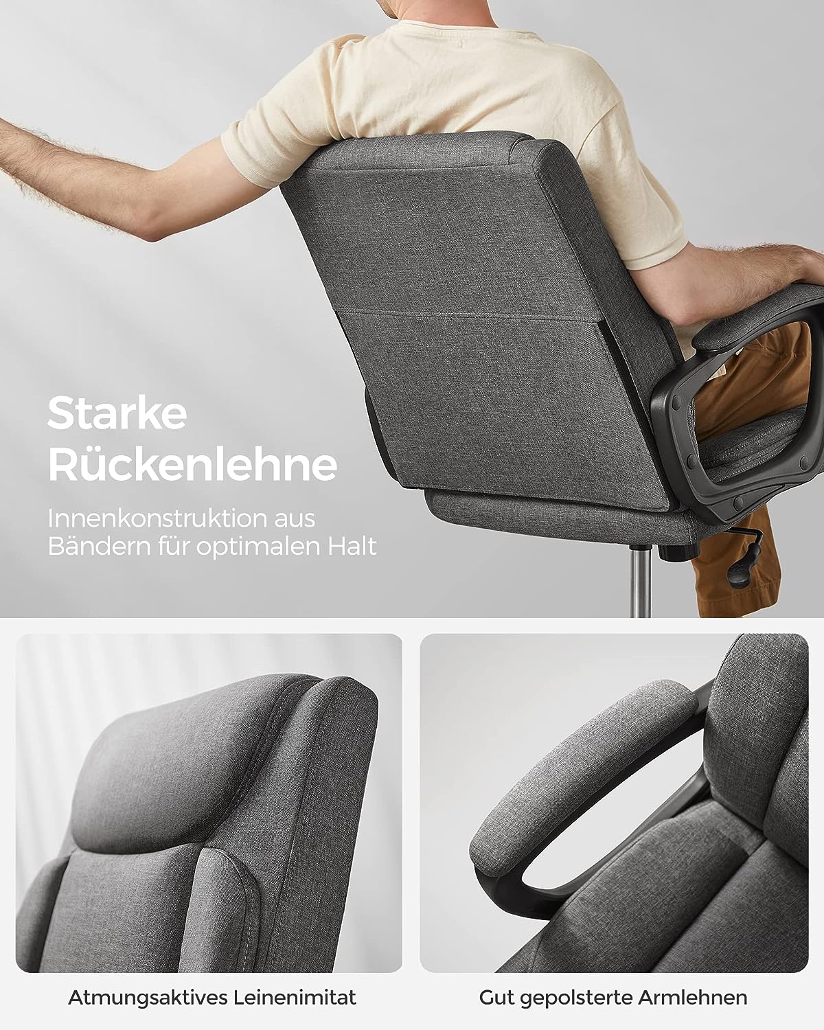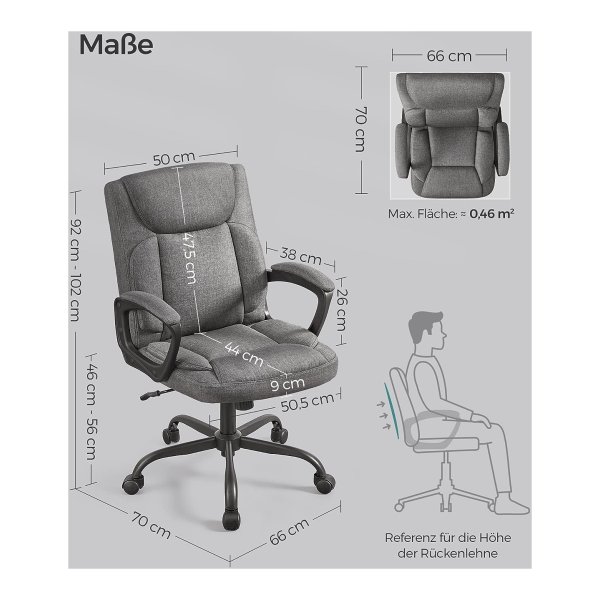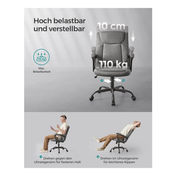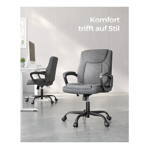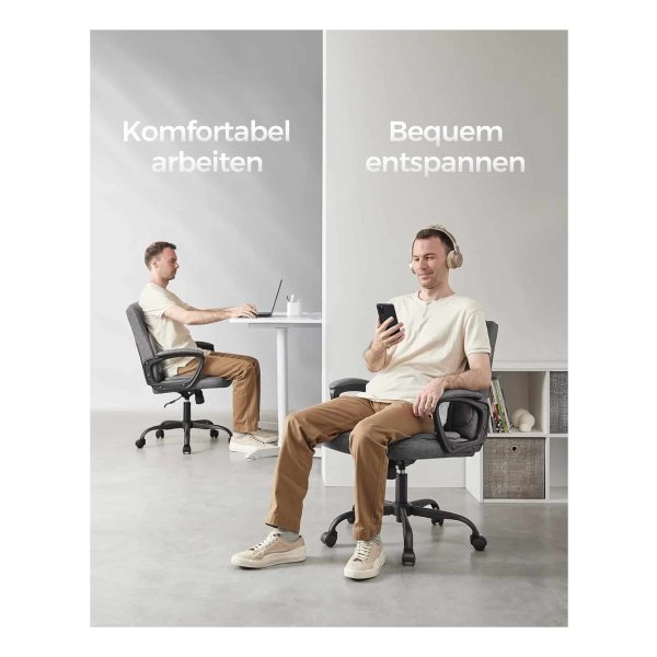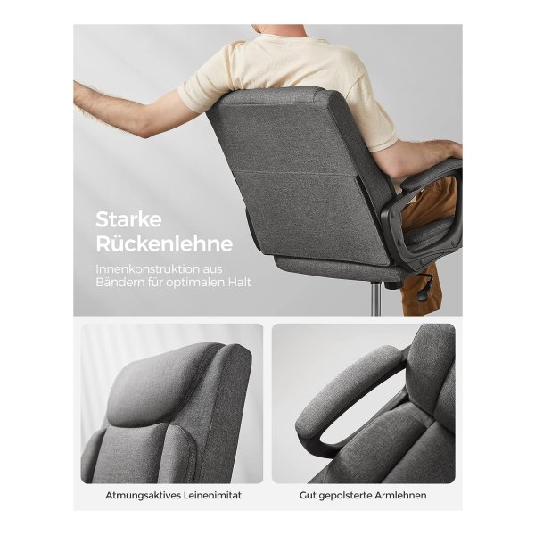 Bureaustoel, computerstoel, ergonomische draaistoel, kantelfunctie, in hoogte verstelbaar, gevoerde armleuningen, katoenmix, grijs