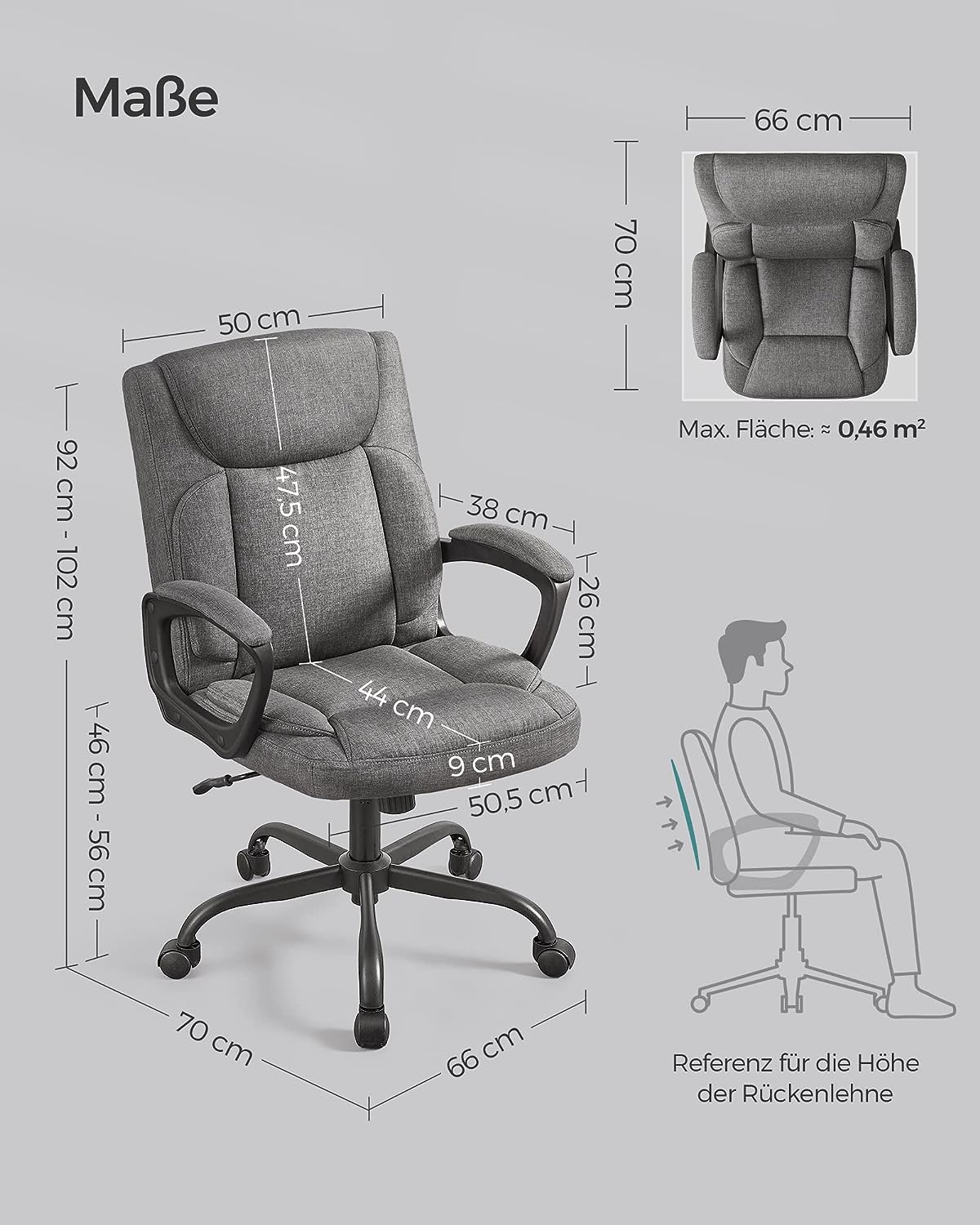 Afmetingen van de rugleuning: 50 x 47,5 cm (b x h)