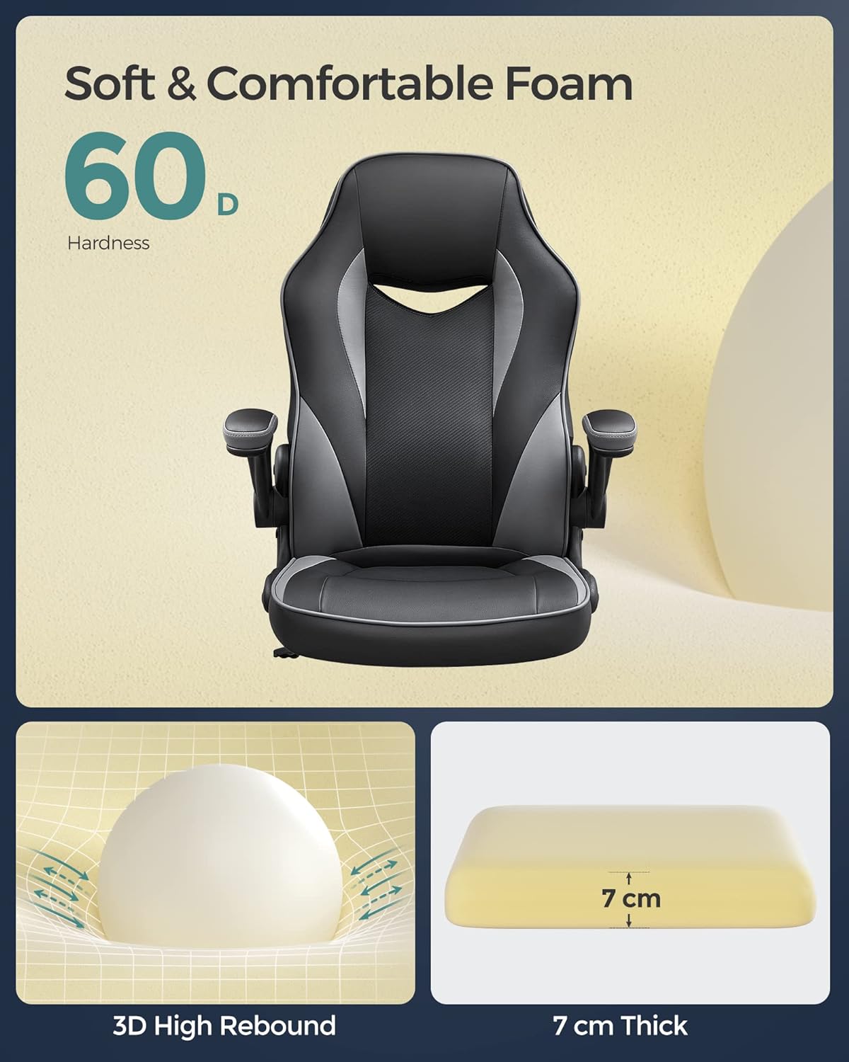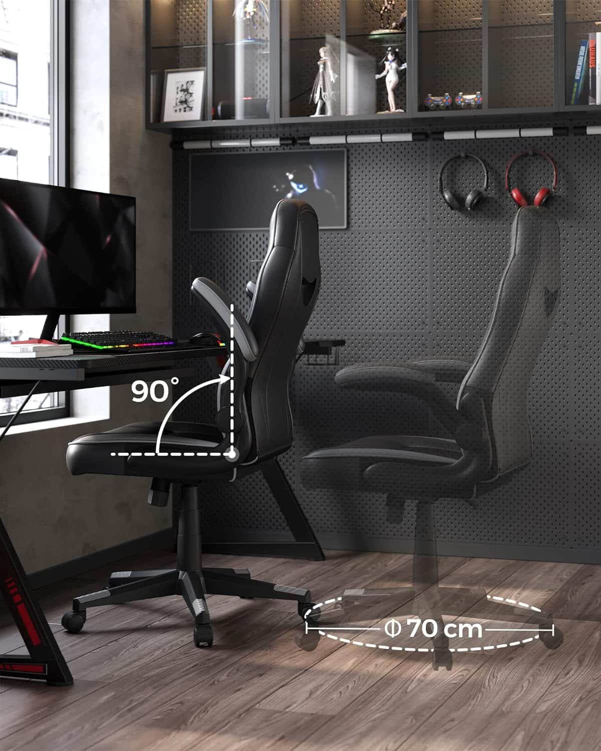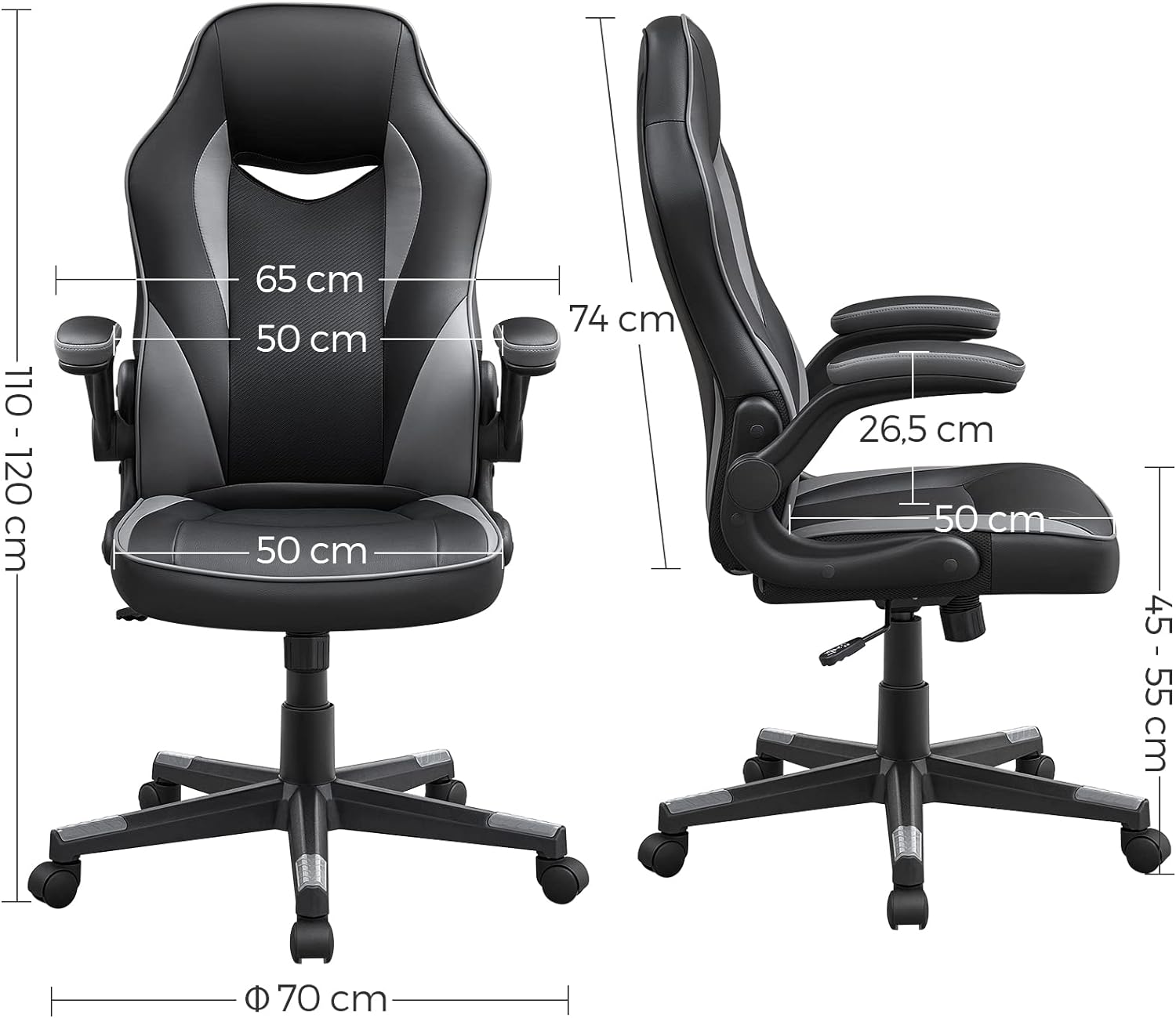 Bureaustoel, ergonomische bureaustoel, computerstoel, in hoogte verstelbaar, belastbaar tot 150 kg, PU imitatieleer, kantoor, thuis, kantoor, zwart en grijs