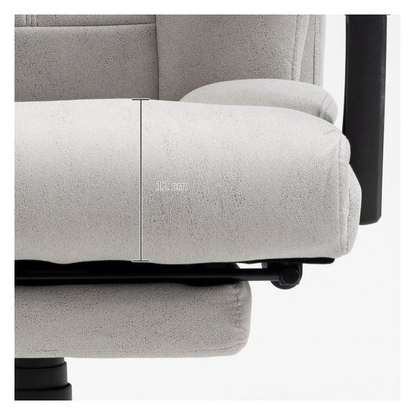 De stoel heeft een verstelbare kantelhoek van 155 graden en een voetensteun die de druk op uw rug verlicht. De gewatteerde rugleuning met een gebogen vorm zorgt voor extra ondersteuning en comfort tijdens het gebruik.
