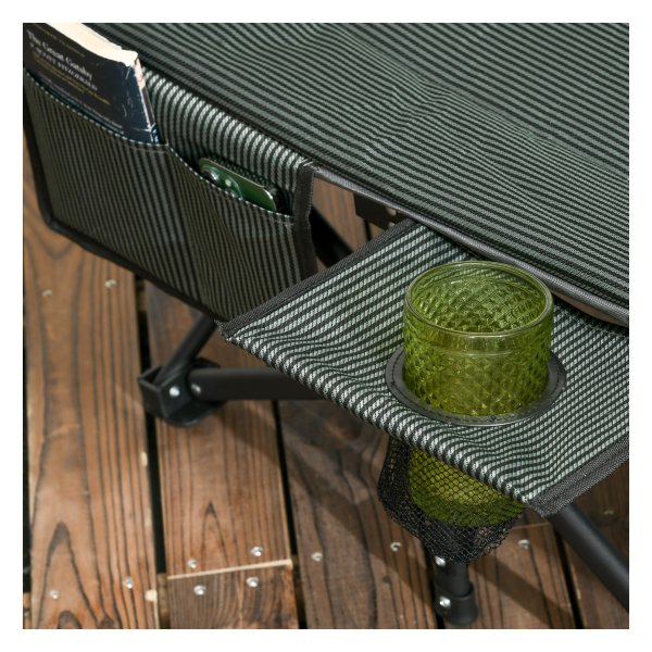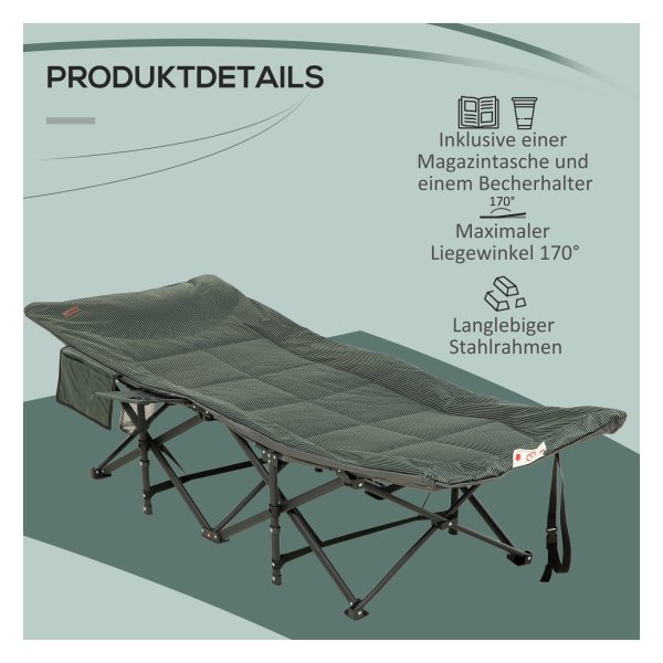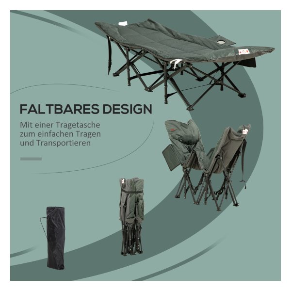 Deze grijze campingbed is ideaal voor reizen, camping en ontspannen dagen aan het strand of zwembad. Het is compact op te bergen en bevat een zachte bekleding, een handige tas en bekerhouder voor maximaal comfort en gemak. Geschikt voor diverse buitenlocaties.