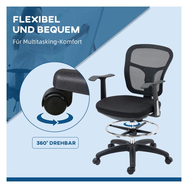 Een goede bureaustoel is essentieel voor een comfortabele werkplek. De ergonomisch ontworpen bureaustoel in het zwart combineert comfort en functionaliteit voor optimaal zitgemak tijdens lange werkdagen.