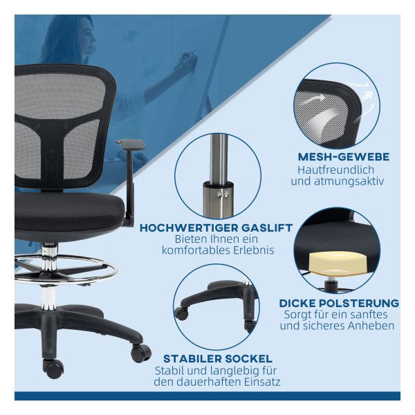 De mesh-bekleding van de stoel is niet alleen comfortabel, maar ook ademend. Dit zorgt ervoor dat je zelfs tijdens lange werksessies fris en comfortabel blijft zitten. Daarnaast zijn de opklapbare armleuningen handig als je de stoel onder je bureau wilt plaatsen, zonder dat deze in de weg zitten.