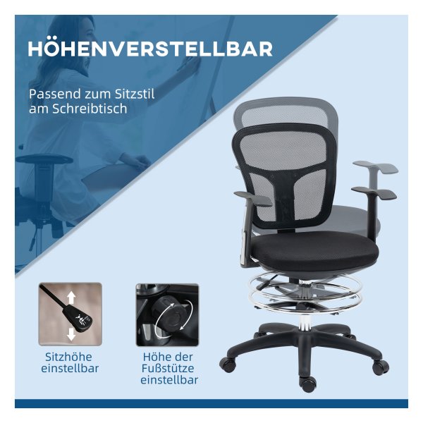 Deze verstelbare bureaustoel is voorzien van een ergonomisch design met een dikke vulling en ademend mesh materiaal. Hierdoor geniet je van de juiste ondersteuning en ventilatie tijdens het zitten. De verstelbare zithoogte van 52 cm tot 72 cm zorgt voor een comfortabele werkhouding aan je bureau.
