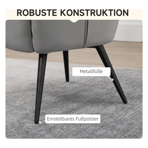 De loungestoel is perfect voor een relaxte avond thuis, om lekker een boek te lezen of een film te kijken. De gevoerde zitting zorgt ervoor dat u comfortabel kunt zitten, terwijl de hoge rugleuning en armleuningen extra ondersteuning bieden. De stalen poten van de stoel zijn niet alleen stabiliteit, maar geven ook een moderne uitstraling aan de stoel.
