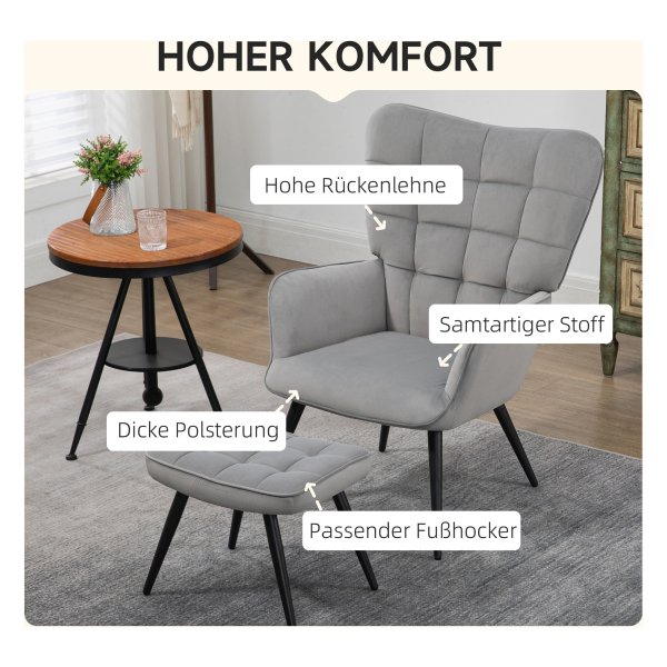 Loungestoel – Comfort – Voetenbank – Lichtgrijs