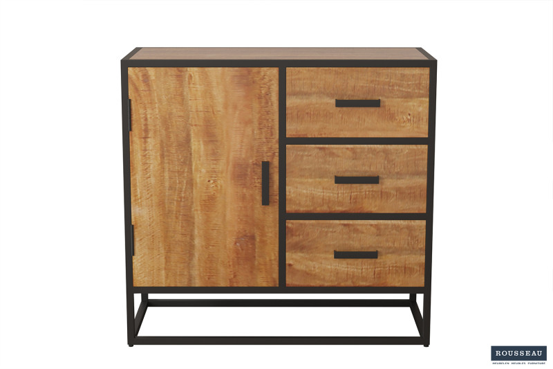 Commode ‘Madeira’ 85 cm Mangolia, Structuur metaal, blad exotisch hout mangolia