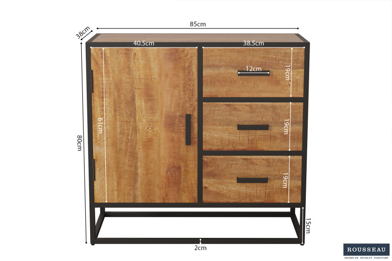 Met afmetingen van H-H 80 x B-L 85 x D-P 38 cm en een gewicht van 40.