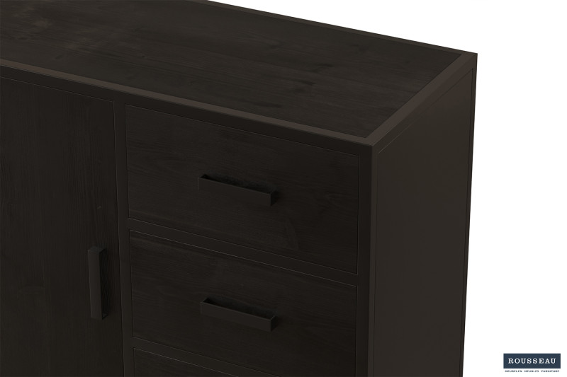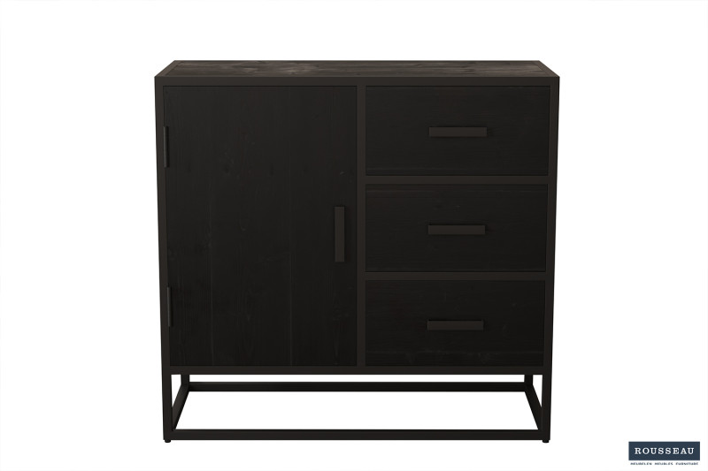 Commode ‘Madeira’ 85 cm Mangolia zwart, Structuur metaal, blad exotisch hout mangolia