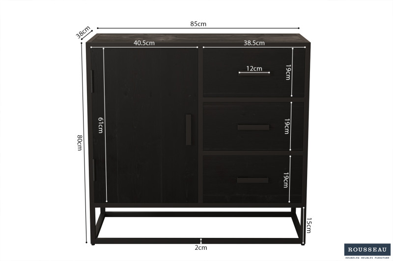Met afmetingen van H-H 80 x B-L 85 x D-P 38 cm en een gewicht van 40.