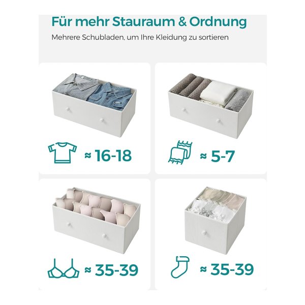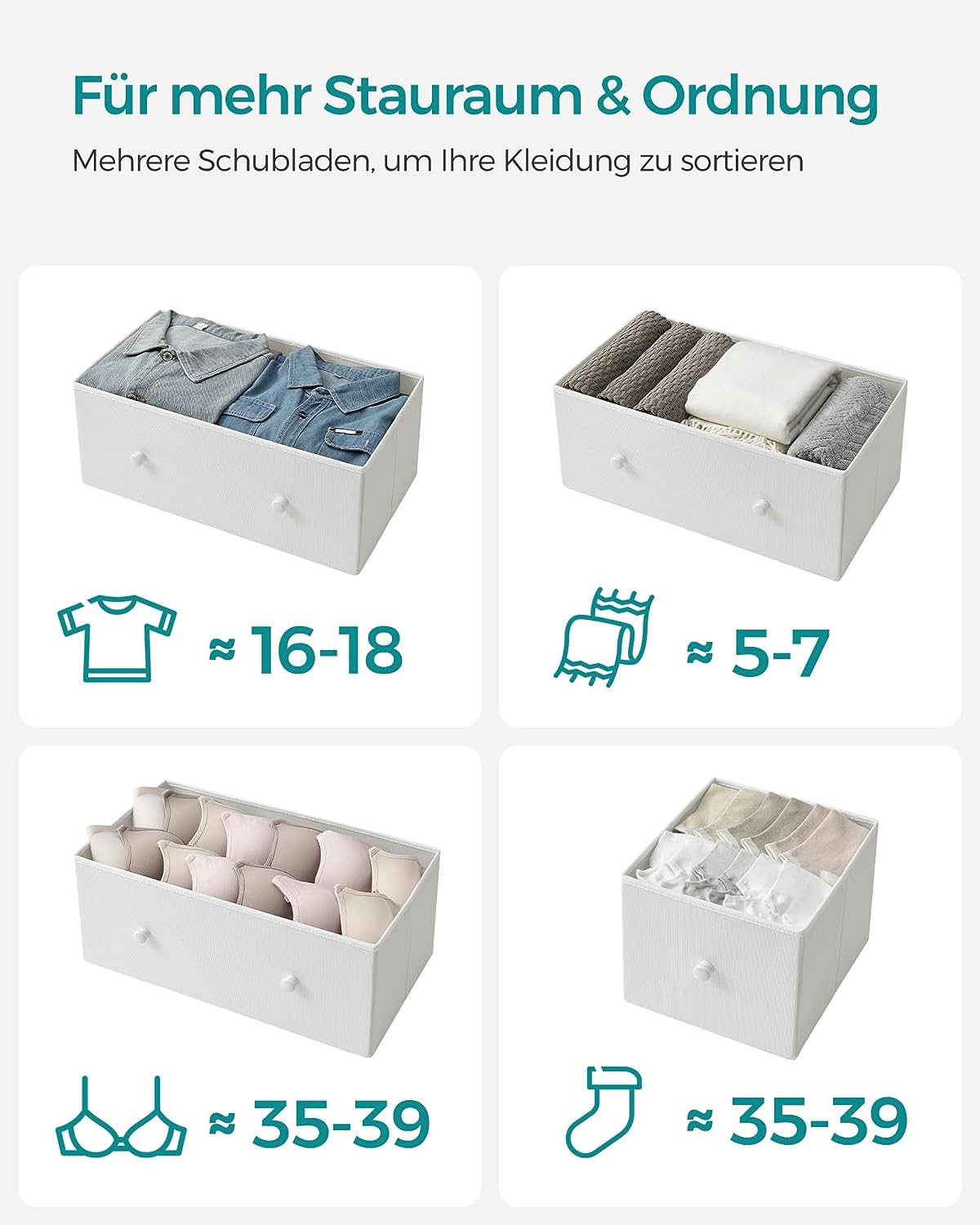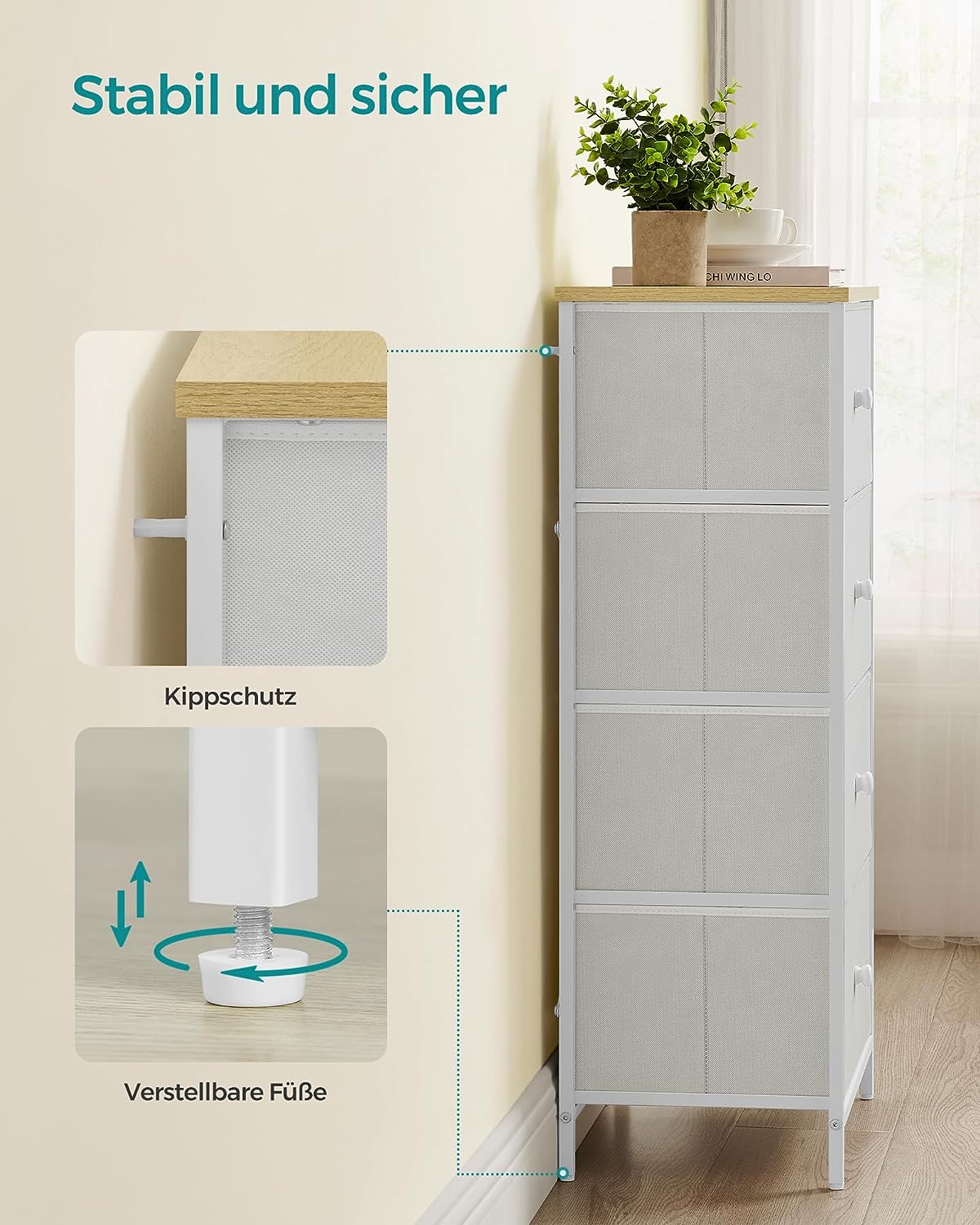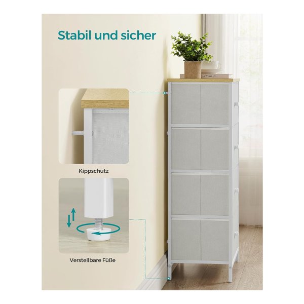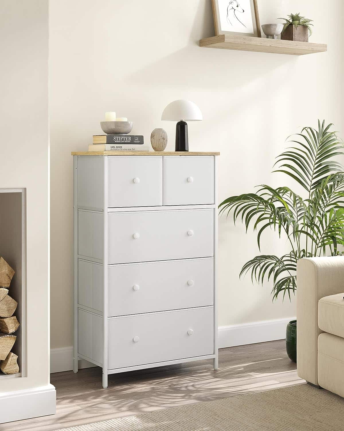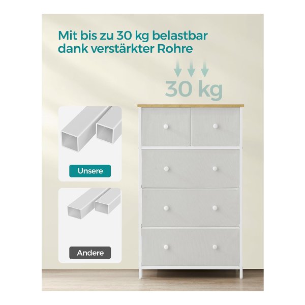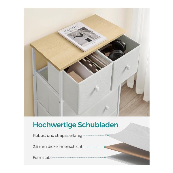 Commode, Opbergkast, 5 Stoffen Laden, Voor Hal, Woonkamer, Wit-Eiken