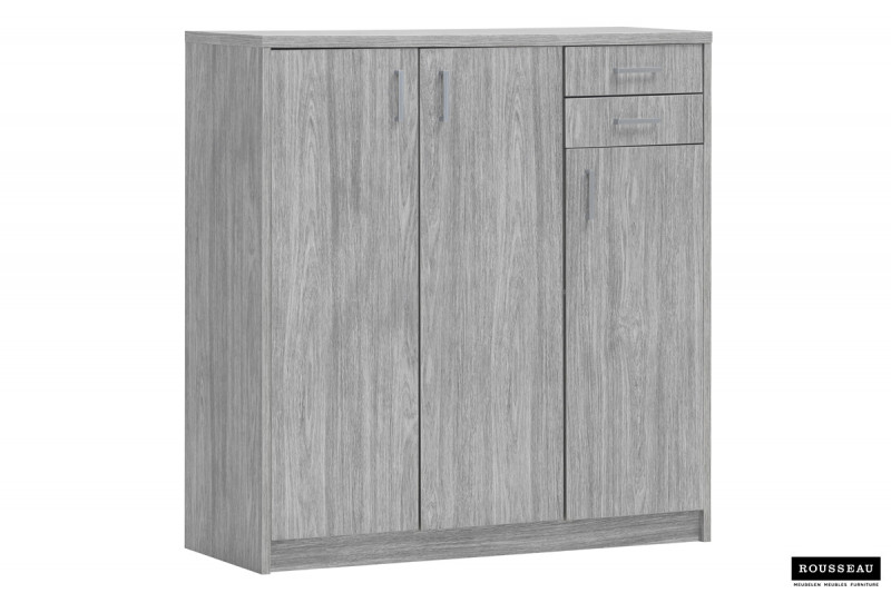 Commode ‘Spacio’ 3 deuren 2 laden Grijze eik, , Spaanderplaat, ABS boorden en decor