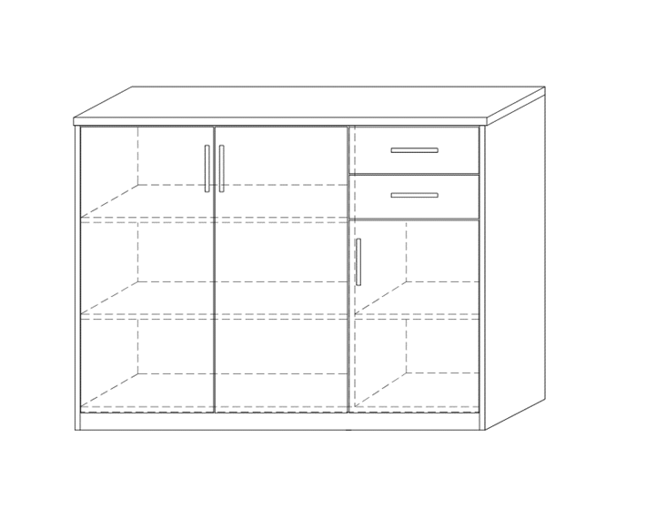 Commode ‘Spacio’ 3 deuren 2 laden Wit, , Spaanderplaat, ABS boorden en decor