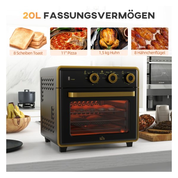 Met een inhoud van 20 liter biedt deze compacte oven voldoende ruimte voor diverse gerechten. Van 4 sneetjes brood tot een hele kip van 1,5 kg of een pizza van 28 cm, je bereidt met gemak een maaltijd voor het hele gezin. Bovendien zorgen de binnenverlichting en het kijkvenster ervoor dat je altijd een duidelijk zicht hebt op het voedsel in de oven, wat zorgt voor een optimale kookervaring.