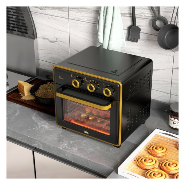 Deze multifunctionele oven biedt 5 verschillende functies in één handig apparaat. Zo kun je niet alleen opwarmen, grillen, roosteren en bakken, maar ook frituren. Met slechts één product heb je toegang tot een scala aan kookmogelijkheden, ideaal voor drukke huishoudens.