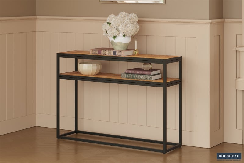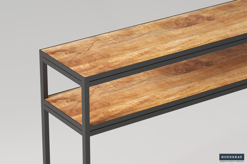 Console ‘Madeira’ Mangolia, Structuur metaal, blad exotisch hout mangolia